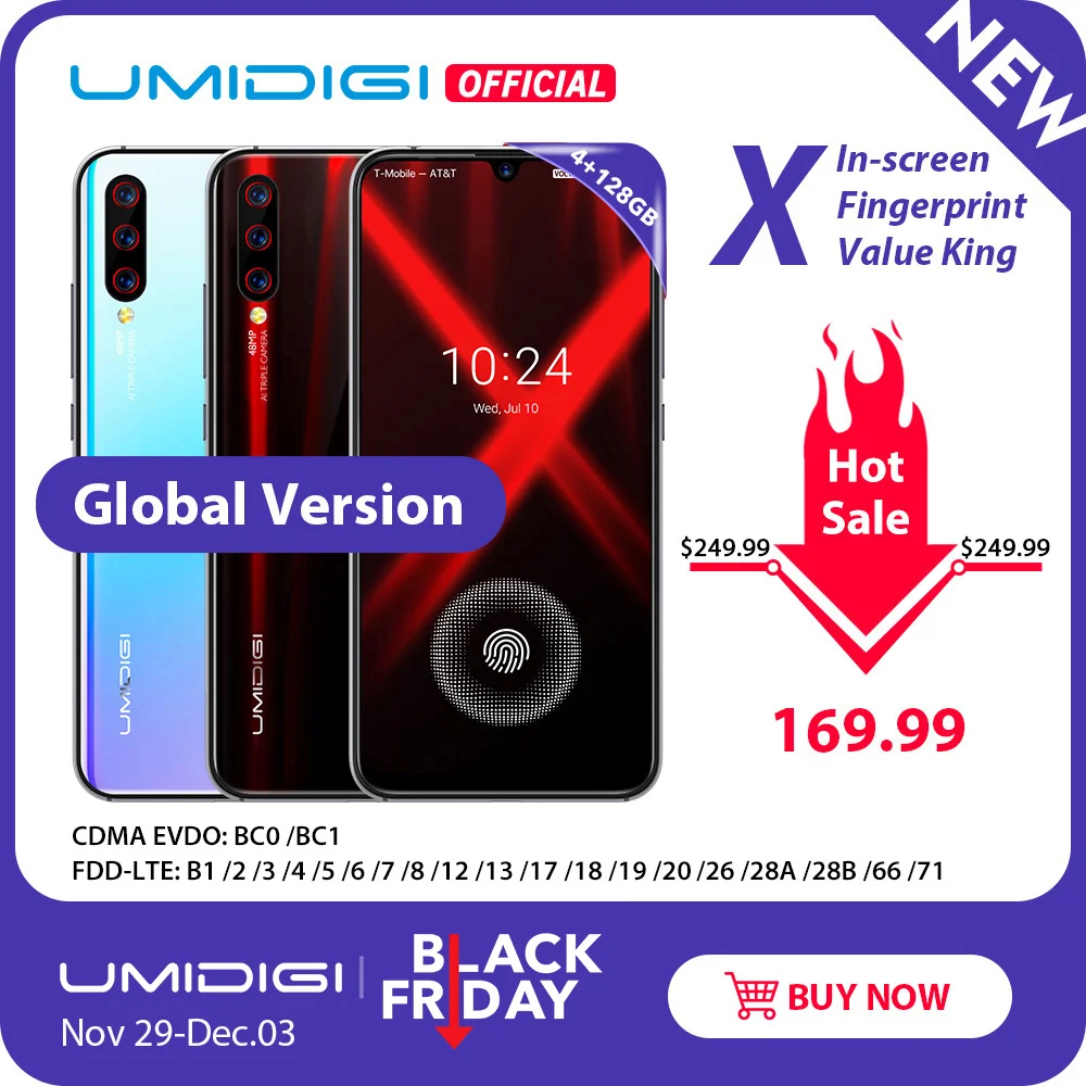Very best Global Version UMIDIGI X In-screen Fingerprint 6.35" AMOLED 48MP Triple Rear Camera 128GB NFC Helio
